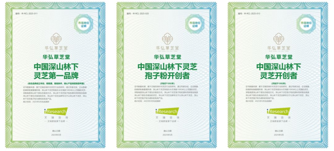 可以说,华弘草芝堂这种对时间与自然的敬畏,铸就了产品稀缺性的根基,其四大特点即“成本高”“品质高”“产量低”“效果好”,绝非那些“速成贴牌”和试图模仿的玩家能比。也正因如此,华弘草芝堂的灵芝养生产品才能在市场上杀出重围,在高客单的前提下,复购率远超市场平均值。华弘草芝堂以品类创新破局,精准开拓深山林下灵芝赛道。其成果获得了第三方市场认证机构艾瑞咨询的权威验证:“中国深山林下灵芝第一品牌”“中国深山林下灵芝开创者”“中国深山林下灵芝孢子粉开创者”。