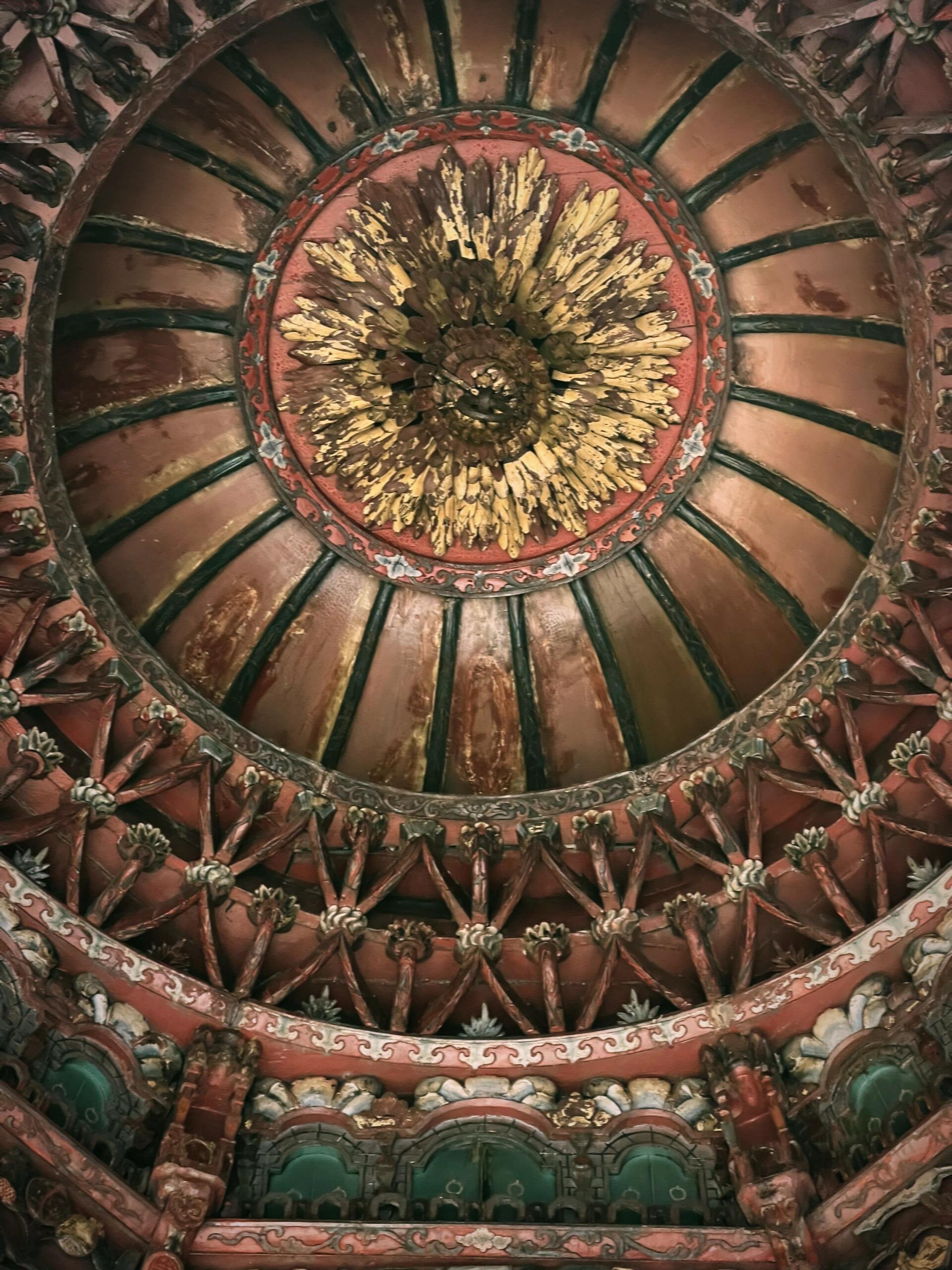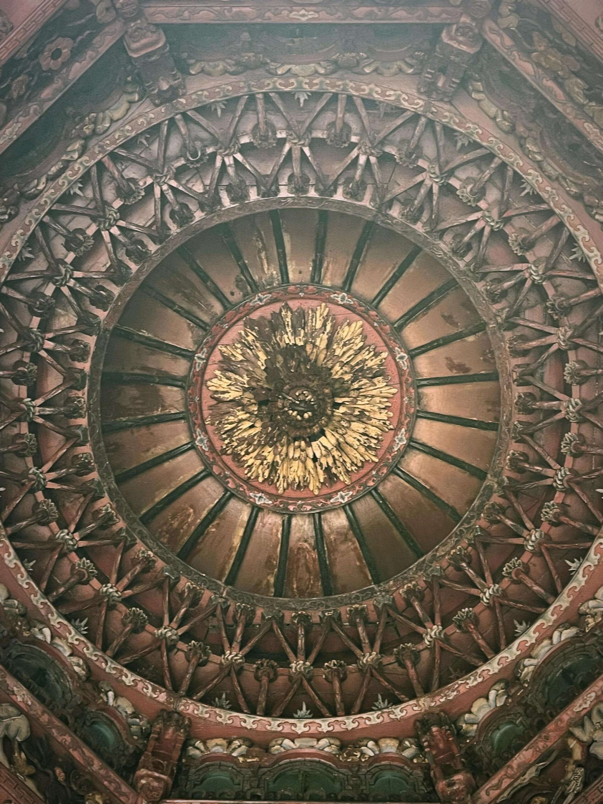 高爷庙的清晨常出现背着相机的年轻人。他们支起三脚架,用移轴镜头捕捉藻井的细节,RAW格式文件里,斗拱的榫卯咬合、金箔的氧化痕迹纤毫毕现。这种"技术凝视"与百年前工匠的凿刀形成跨时空对话——当数字传感器记录下藻井的每一道曲线,当年的老匠人或许也曾在油灯下,用墨斗丈量出相同的弧度。