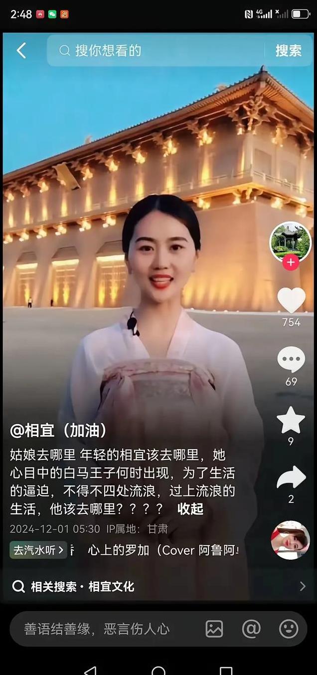 西安带货后,相宜没有回到村里。而是用小号,再度发视频,视频IP地址,显示是在甘肃!