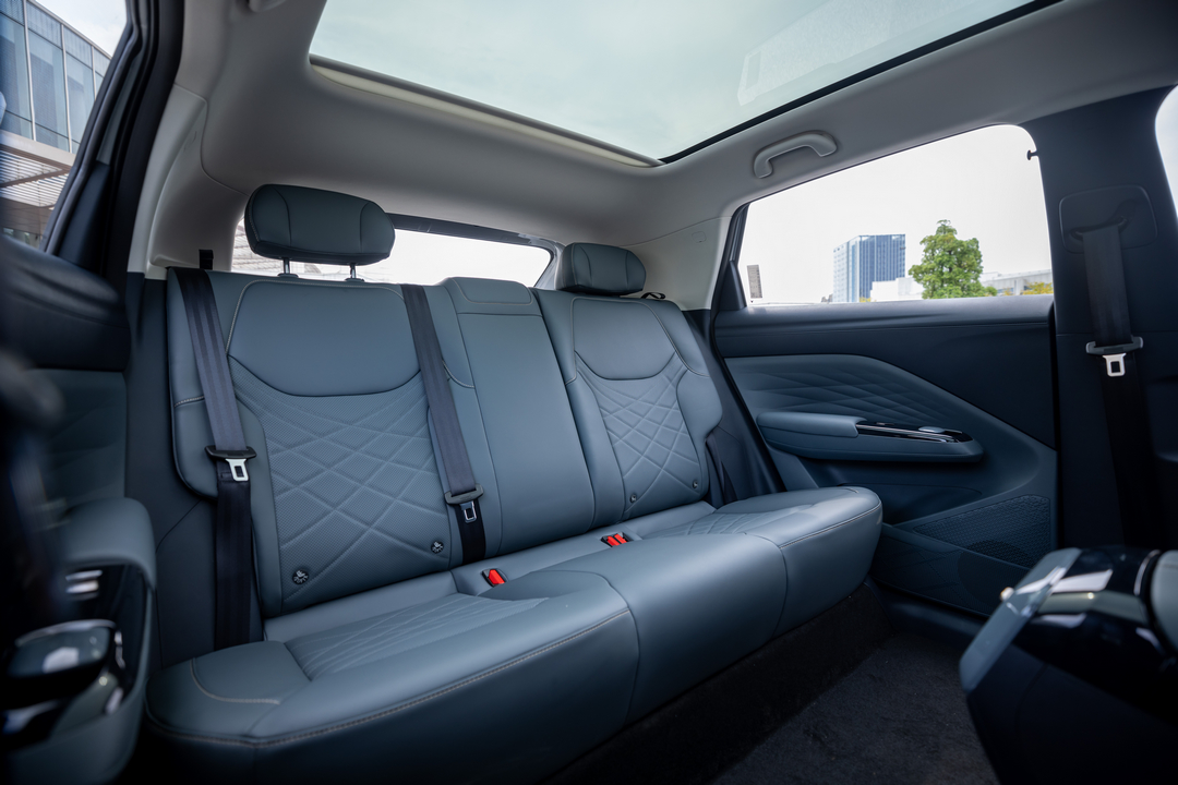 车内空间方面,由于是2770mm轴距和短车身设计,所以整个车内乘坐的宽敞程度是完全能得到满足的。特别是前后排乘坐距离达到903mm,比奔驰GLC长60mm,笔者身高1米8亲测毫无压力。此外全车还有32处实用储物空间,涵盖门板储物格、防滑杯托、隐藏挂钩等,轻松收纳各类物品,在细节关怀上,极狐汽车从来是领先的。而将后排座椅放倒后,纵深扩展至1950mm,容积跃升至1352L,露营装备、滑雪板等大件物品皆可轻松装载。