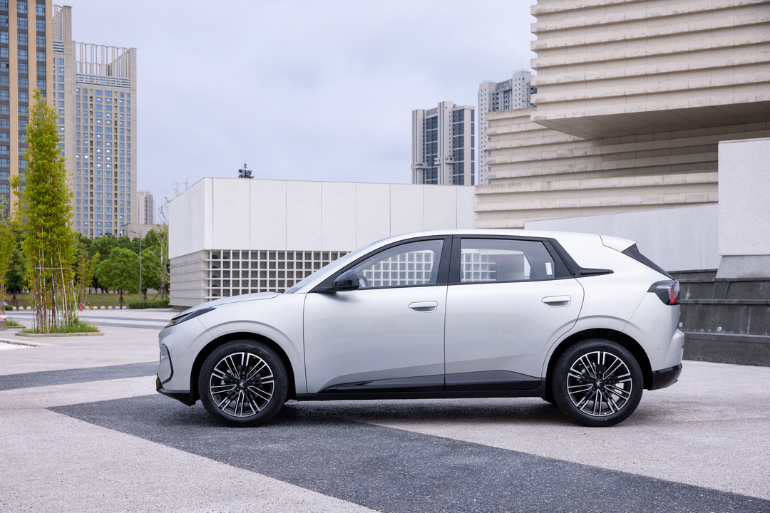 车身侧面,上扬的腰线动感十足,曲线设计简洁但又充满情感,给人带来情绪价值。半隐藏式门把手兼顾了美观和实用,而独特的C柱设计让整车看上去更加修长。车身尺寸方面,极狐T1长宽高分别为4337mm×1860mm×1572mm,轴距2770mm,同时采用了兼顾操控乐趣的四轮四角设计,轴长比0.64,超长轴距不仅在同级中领先,甚至超过了部分B级车。