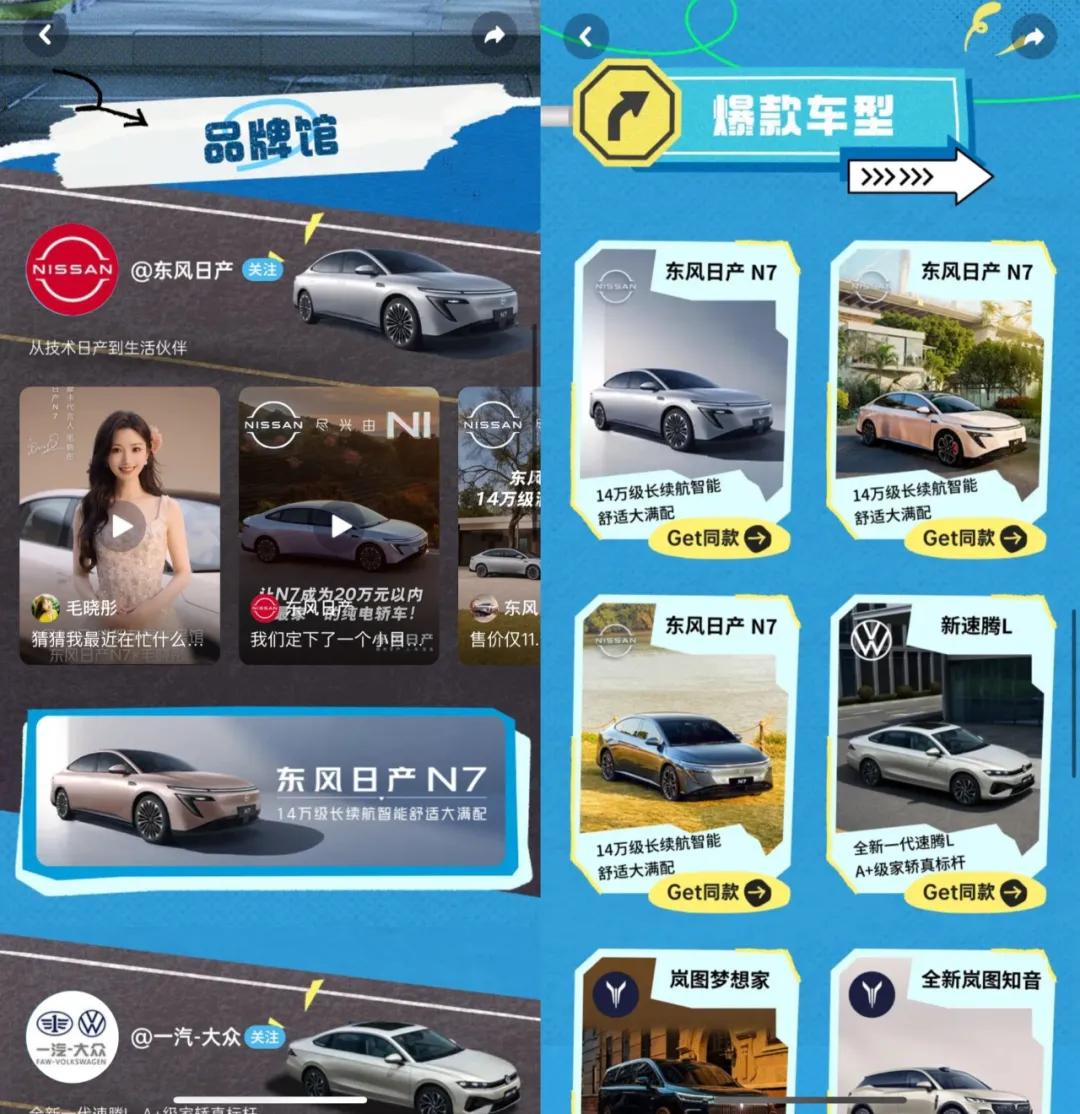 大曝光、大声量之外,“DOUCAR城市派对”也为品牌构建了 “流量 - 内容 - 转化” 闭环,让车展流量切实为生意服务。活动H5主会场中,品牌馆直连品牌直播间,沉浸式互动强化品牌认知,爆款车型展示区,一键跳转线索落地页,精准承接流量并锁定潜在客群,破解车展 “只赚声量难落转化” 痛点,实现品牌声量与销售线索双增长。