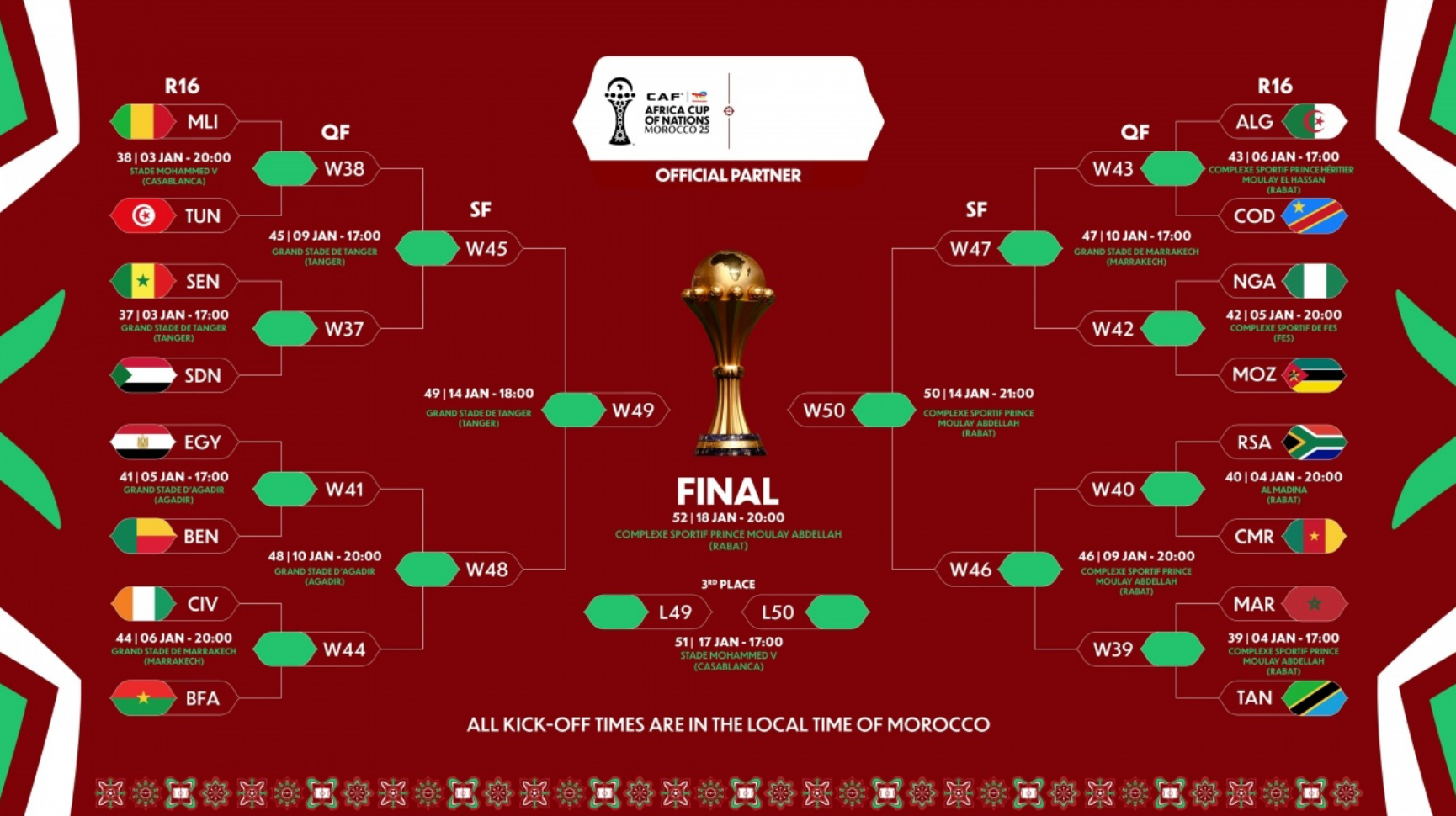 这两场1/8决赛各具看点:塞内加尔vs苏丹是实力悬殊的较量,塞内加尔有望轻松晋级;马里vs突尼斯则是势均力敌的北非德比,防守与进攻的博弈将决定比赛走向。