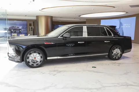 外观:国宾车队同源丹砂玄晶黑车漆(工艺更复杂,抗刮耐腐),车身无明显腰线更庄重,24K 金立标刻有 “国礼” 小字,低调显专属。