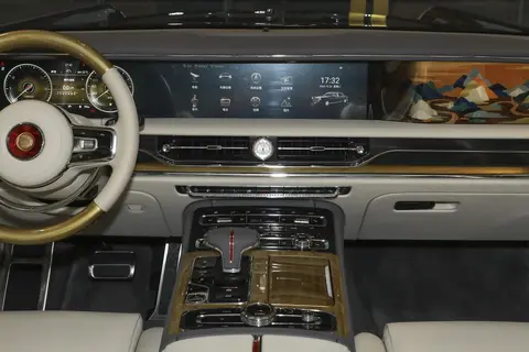 内饰:24K 金丝刺绣云龙纹真皮座椅(非遗绣娘手工缝制,耗时 360 小时),人民大会堂国宾厅同款江河湖海大漆饰板,162 颗施华洛世奇水晶星空车顶(可模拟 8 种星座),瑞士进口机芯时钟,“墨香”“松烟” 双定制香氛。