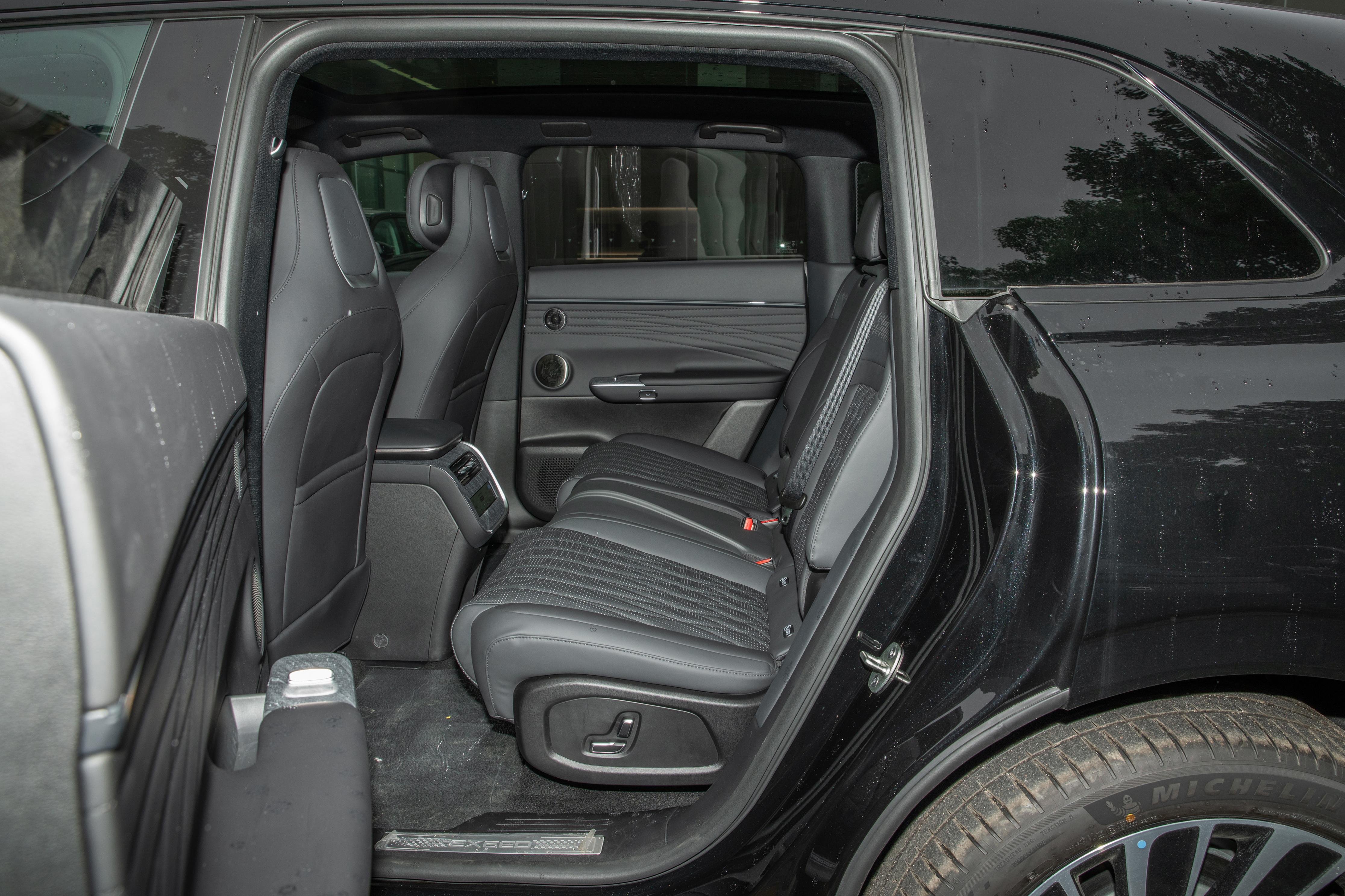 2、乘坐空间:后排宽敞,座椅灵活后排腿部空间充裕,三位成年人同坐也不拥挤。后排座椅靠背支持0-130°电动调节,前后移动行程达180mm。