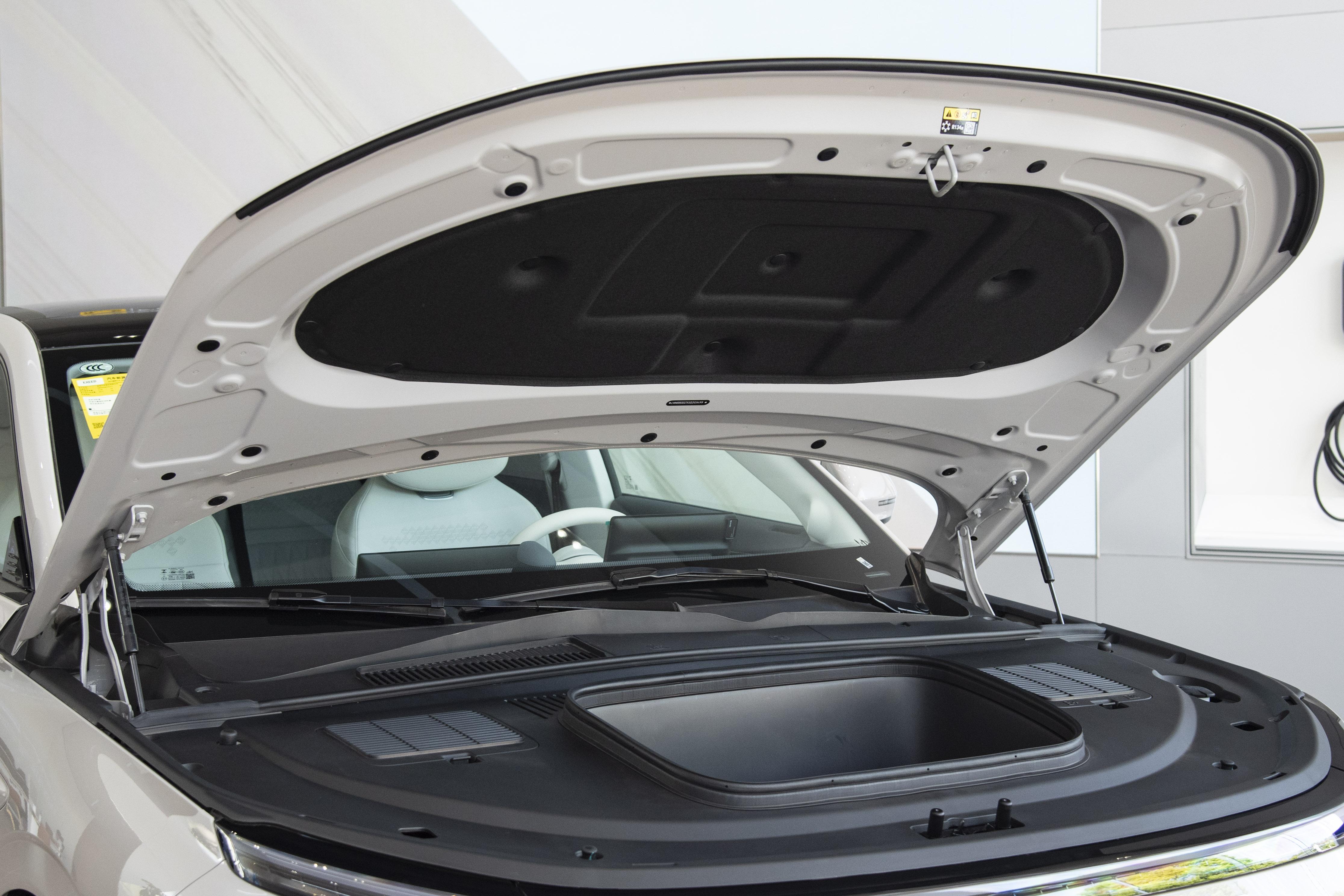 4、细节设计:全车拥有36处储物空间包括电动手套箱(支持密码解锁),前备箱(纯电版容积60L,可放置登机箱)。