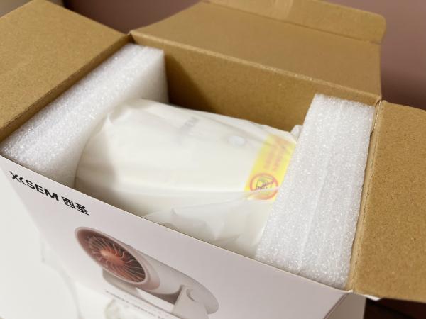 打开简洁的白色包装,西圣Warm Mini第一眼就给人好感。机身比我想象的还要小巧,只比一罐可乐略高,放在书桌一角几乎不占空间。
