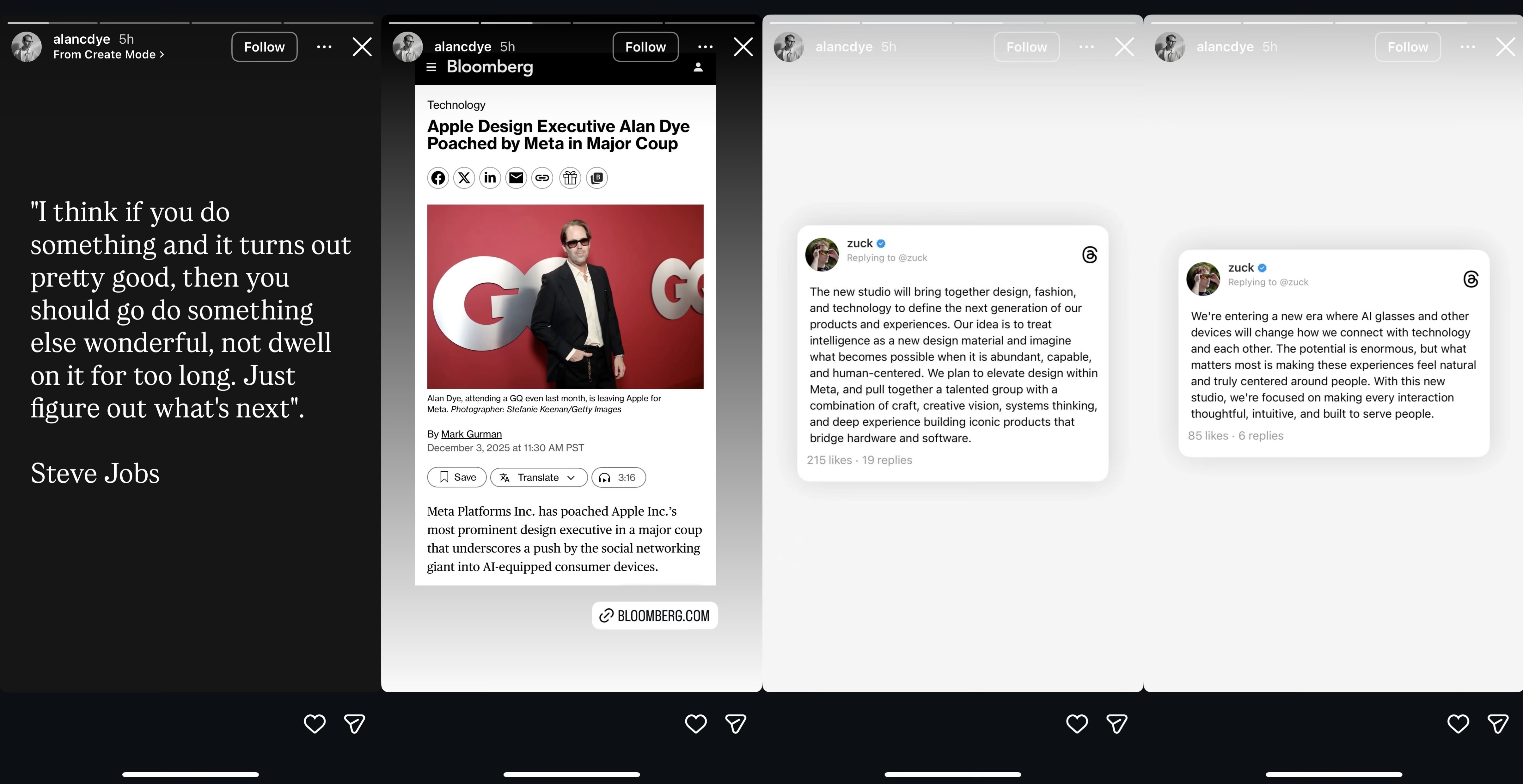 智东西12月4日消息,今天,Meta首席执行官马克·扎克伯格(Mark Zuckerberg)在社交平台Threads上发布帖子官宣,苹果人机交互设计副总裁、用户界面设计负责人艾伦·戴伊(Alan Dye)将加入Meta,并称“正在建立一个由戴伊领导的全新设计工作室,并将智能视为一种新的设计材料”。