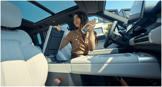 钛7首发首搭比亚迪自研BYD Pad,是行业首款专为“车载使用”而设计、支持车家两用的智能平板,支持45项车控功能;前排座椅背后的BYD Pad转轴支架,更兼容市场上的各大主流平板,可在车内实现固定和充电;钛7全球首发搭载比亚迪自研电动滑板、自研游戏手柄等,同样为家庭成员的出行增添多重乐趣。