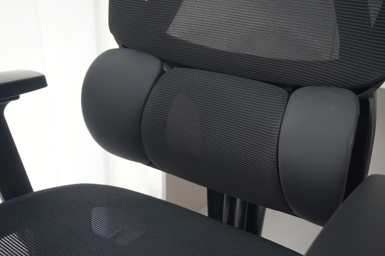 有谱V1的护腰思路比较偏“顺着身体来”。它采用的是双背分离结构,腰部区域单独做成可活动的支撑单元,配合弹片结构,在你正坐、轻微后仰时,腰托都会跟着角度变化做出调整。实际感受不是那种很强烈的顶腰,而是腰部始终有个支点在托着,减少长时间坐着时腰部悬空的情况。对于日常办公、写文档、盯屏幕这类久坐场景,能起到缓解腰酸的作用,但如果你特别追求强支撑或明显护腰感,可能会觉得它偏温和。