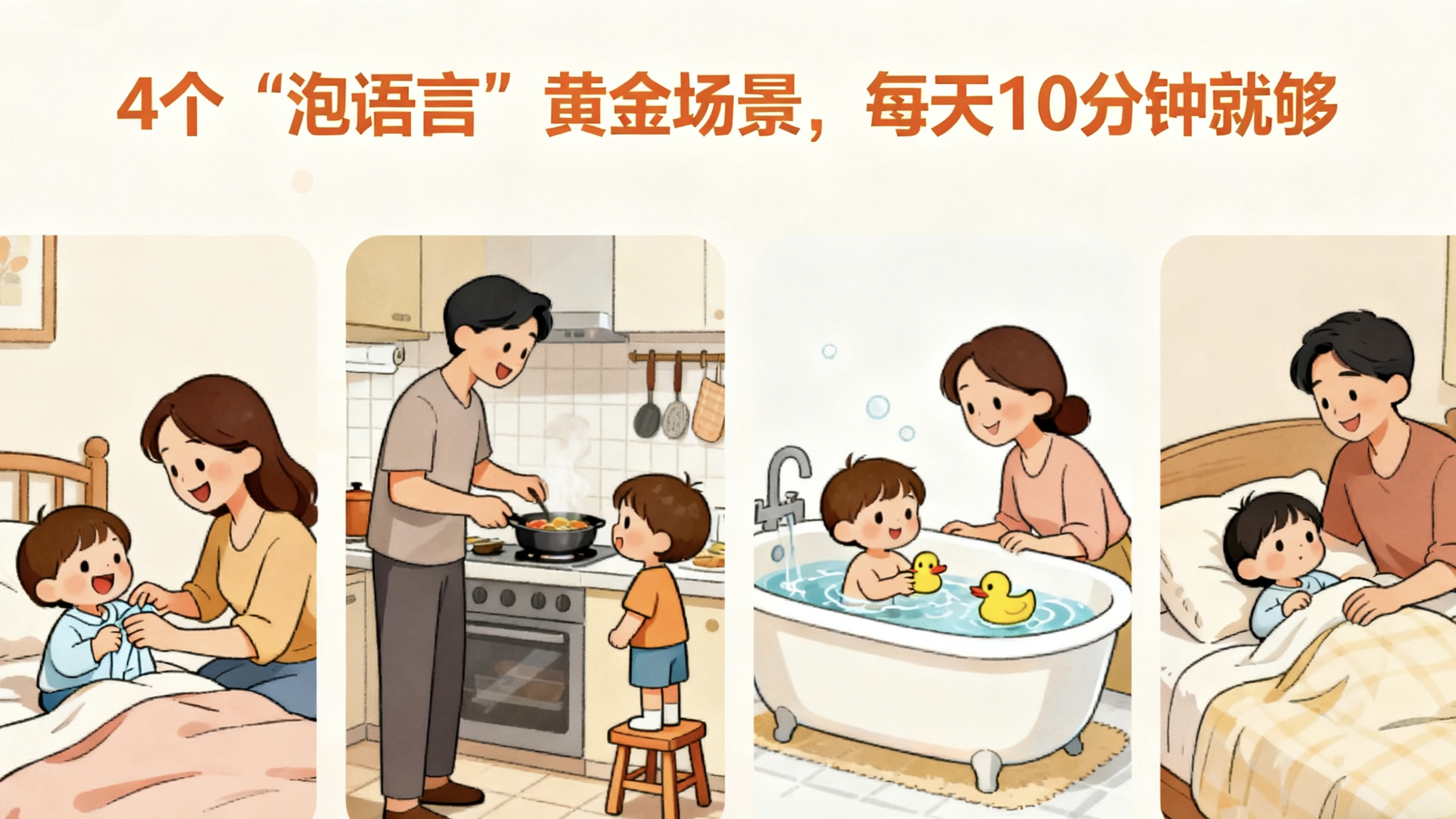 “我家娃2岁了,还只会叫爸爸妈妈,是不是语言发育迟缓?”后台几乎每周都有类似留言。先别急着贴标签,先低头看看:我们到底给了孩子怎样的语言环境?语言不是教出来的,是“泡”出来的。今天这篇,不谈焦虑,只谈方法——每天10分钟,把家变成“语言温泉”,孩子自然开口早、词汇多、表达溜。