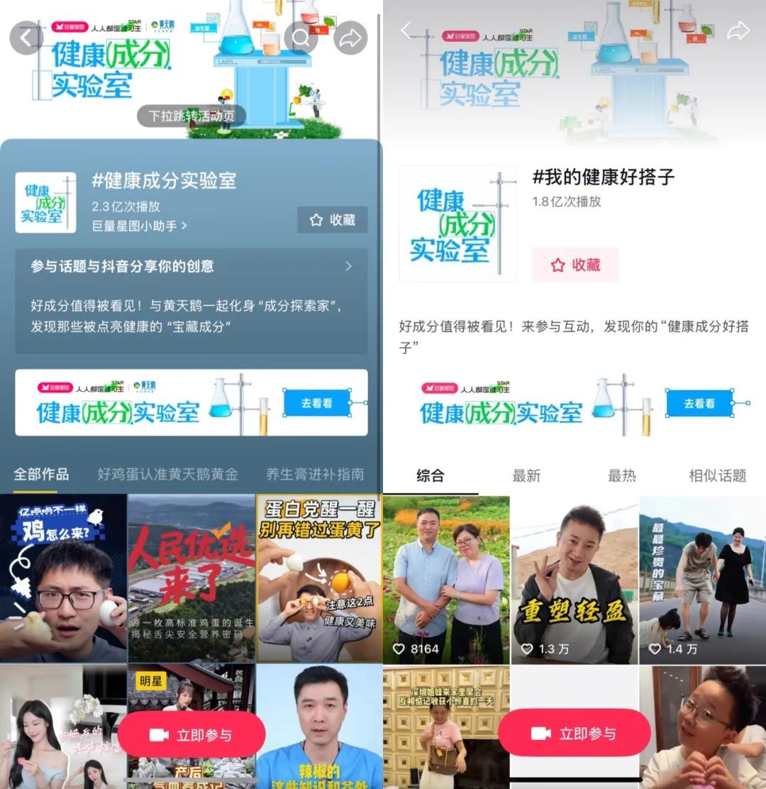首先由官方发起#健康成分实验室和#我的健康好搭子 双话题,广泛邀约专业科普作者以宝藏健康成分科普为主题创作科普内容,并带话题进行造风,共同打造站内话题热度。与日常生活健康息息相关的话题也吸引了众多用户参与分享,激发了UGC创作热潮,让这一股成分科普风从“单向输出”到“双向奔赴”。活动期间,#健康成分实验室 & #我的健康好搭子 双话题播放总计超4亿次,投稿优质内容累计约9000多条。