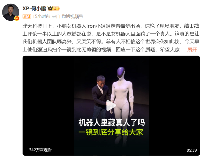 机器人被质疑是真人假扮,这恰恰是中国科技企业最漂亮的“反向认证”。当特斯拉的Optimus还在蹒跚学步,当波士顿动力的机器人只会后空翻博眼球,小鹏的IRON机器人已经能优雅走猫步、灵活拧瓶盖。这不仅仅是技术的超越,更是中国企业在人形机器人赛道上实现的一次认知颠覆。