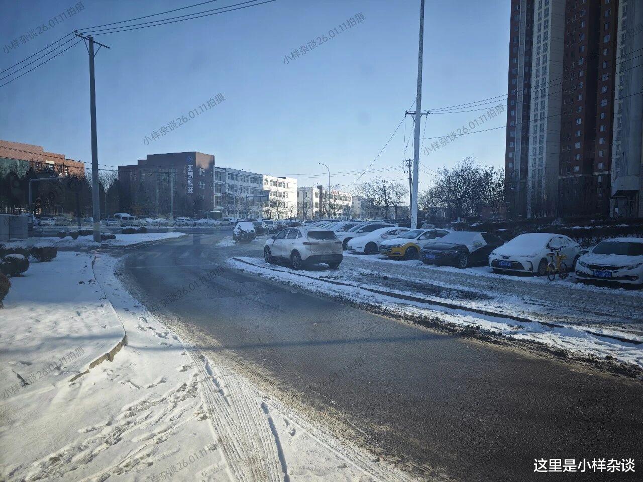 上面两张图就是同一条街道东西两侧的人行道,上图是东侧,属于大东区的部分,人行道已经可以正常行走了,路面非常干净,而下图属于沈河区部分,肉眼可见还未除雪,都是人走出来的效果。