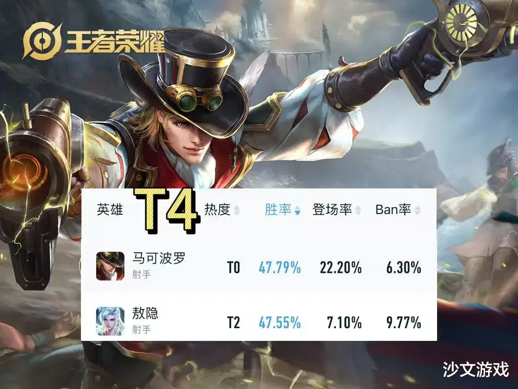 排在巅峰赛发育路T4的英雄有马可波罗、敖隐,这些英雄的胜率在47%至48%之间。