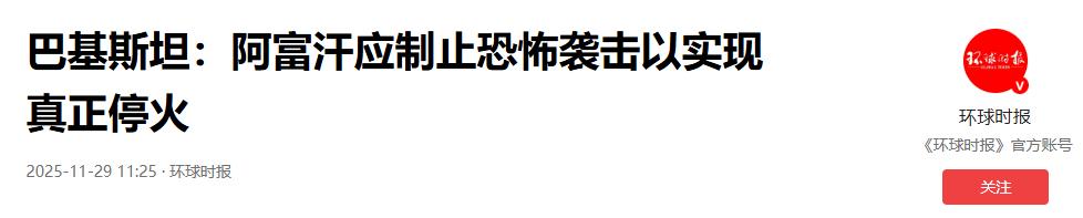 环球时报:巴基斯坦:阿富汗应制止恐怖袭击以实现真正停火