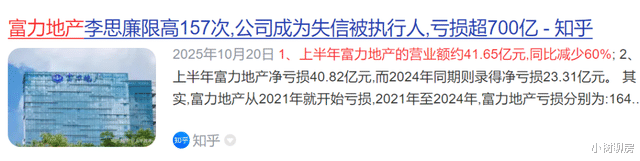 这要从富力地产的现状说起,富力地产于2022年正式暴雷之后,经营状况每况愈下,四年累计亏损超700亿元,老板李思廉被限高157次,俨然成了“老赖”。