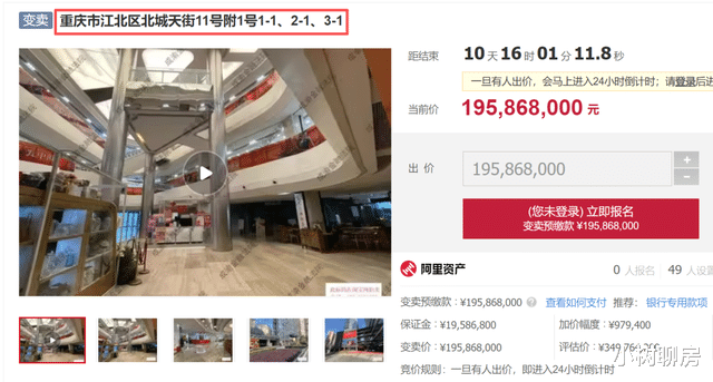 根据阿里法拍网显示,这个叫做“重庆市江北区北城天街11号附1号1-1、2-1、3-1”的大型商业体,确实以1.9586亿元的价格在网上拍卖。