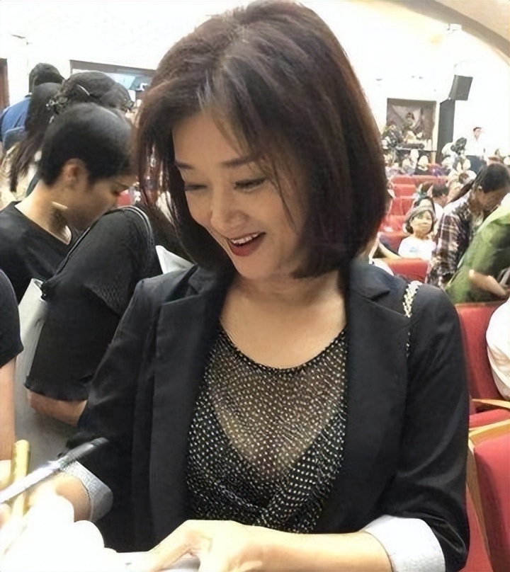 照片里的她穿着黑色皮衣,搭配白色真丝围巾,短发利落,皮肤紧致嫩滑,根本不像是快60岁的人,看起来也就四十多岁。