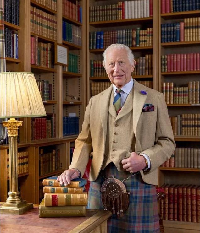 尽管查尔斯国王的最新肖像从未被分享过,但其中却有种极为熟悉的感觉。巴尔莫勒尔城堡图书馆里柔和的灯光,君主表情中的轻松和舒