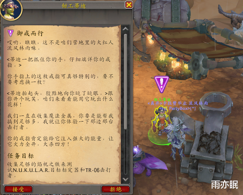 完成之后就可以看到紫色感叹号任务,我们去接到御戒而行,然后找到切换暴风位面的NPC,需要切换到风暴位面。