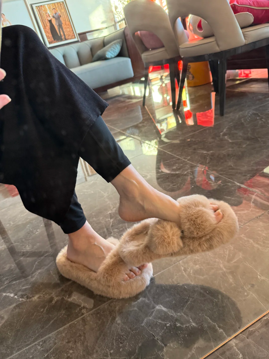 毛毛拖鞋的上脚率真的特别低,在春秋季节的时候穿着会给人一种特别热的感觉,