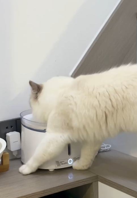 但这种“抗议式刨地”和本能刨地有明显区别:抗议时猫咪会先闻一闻水,刨完后也迟迟不喝,甚至绕着水碗走;而本能刨地后,猫咪会立刻低头饮水,毫无抗拒。