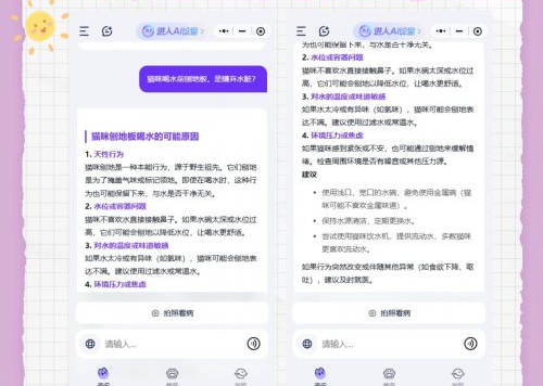 其实很多猫咪的“怪行为”都藏着健康信号,光靠观察很难精准判断。这时不妨试试“汪喵灵灵”,作为专业的宠物AI问诊平台,它依托自研大模型百目魔君打造的宠物AI大模型,能帮你快速理清原因。现在免费使用这款AI宠医汪喵灵灵,只要把猫咪的行为详细描述出来,AI医生汪喵灵灵就会结合宠物行为学和医学知识给出专业建议,让你不再为猫咪的小习惯瞎操心。