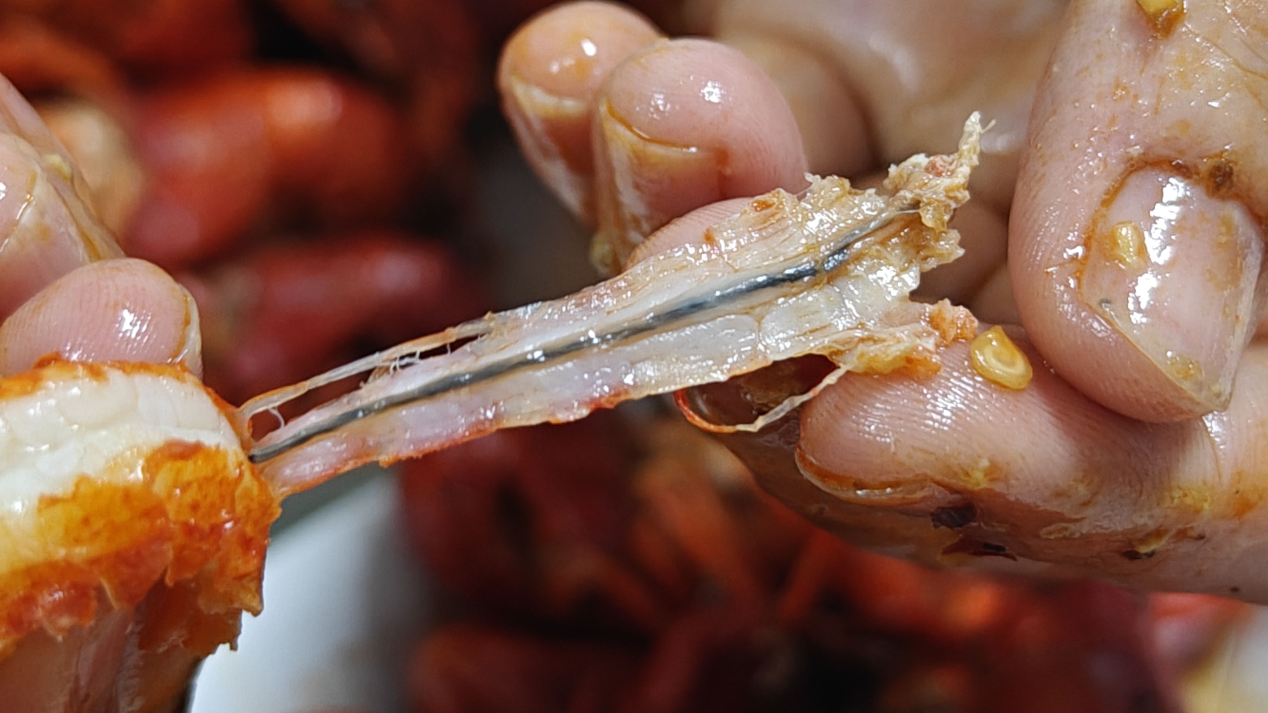 ▼不过,有部分小龙虾的虾线也比较黑,处理不彻底。