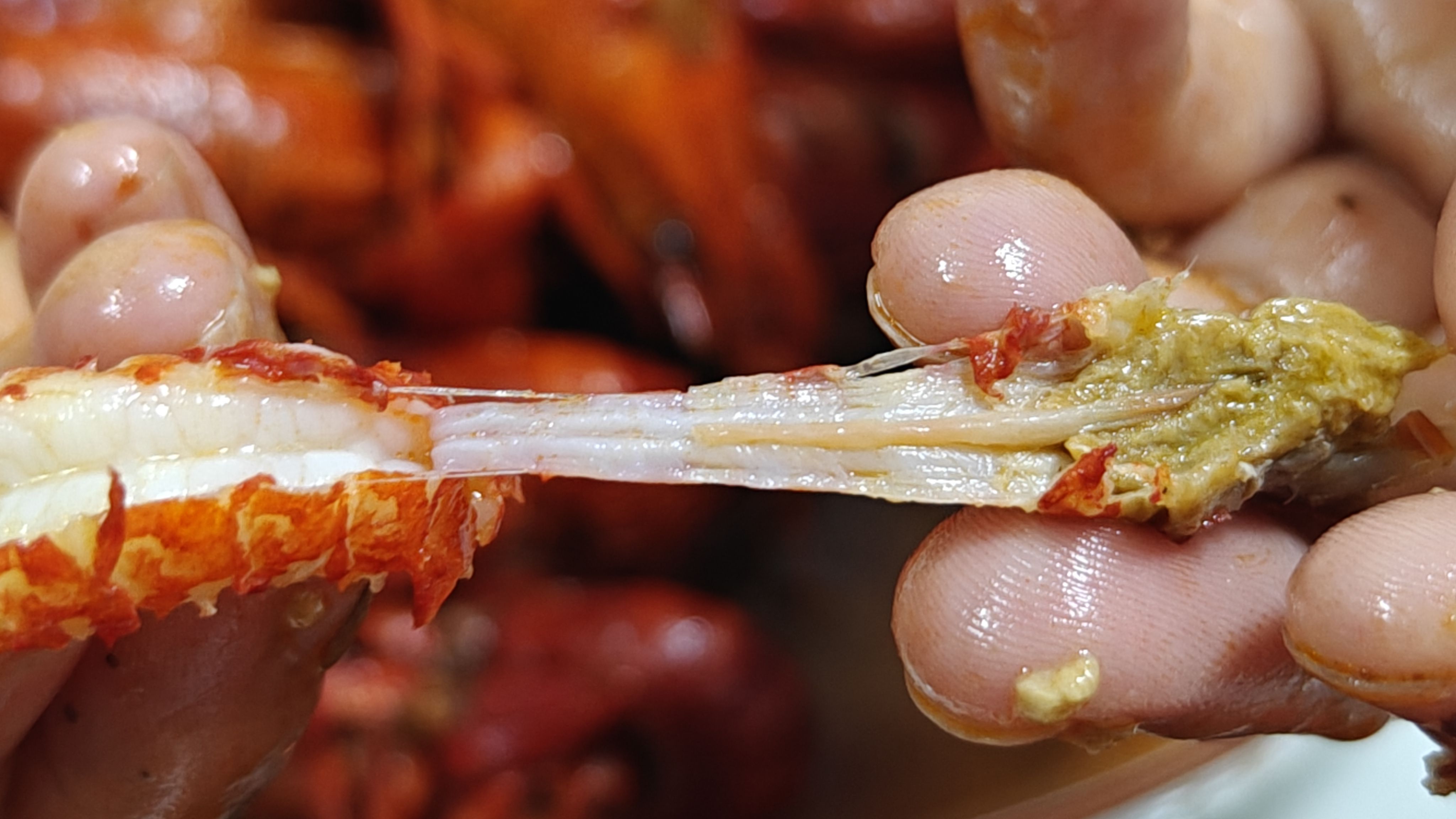 这几款小龙虾都是通过工业化清洗,总的来说处理得都比较干净,只有少部分小龙虾存在虾线发黑的情况,吃起来还是得去掉虾线。