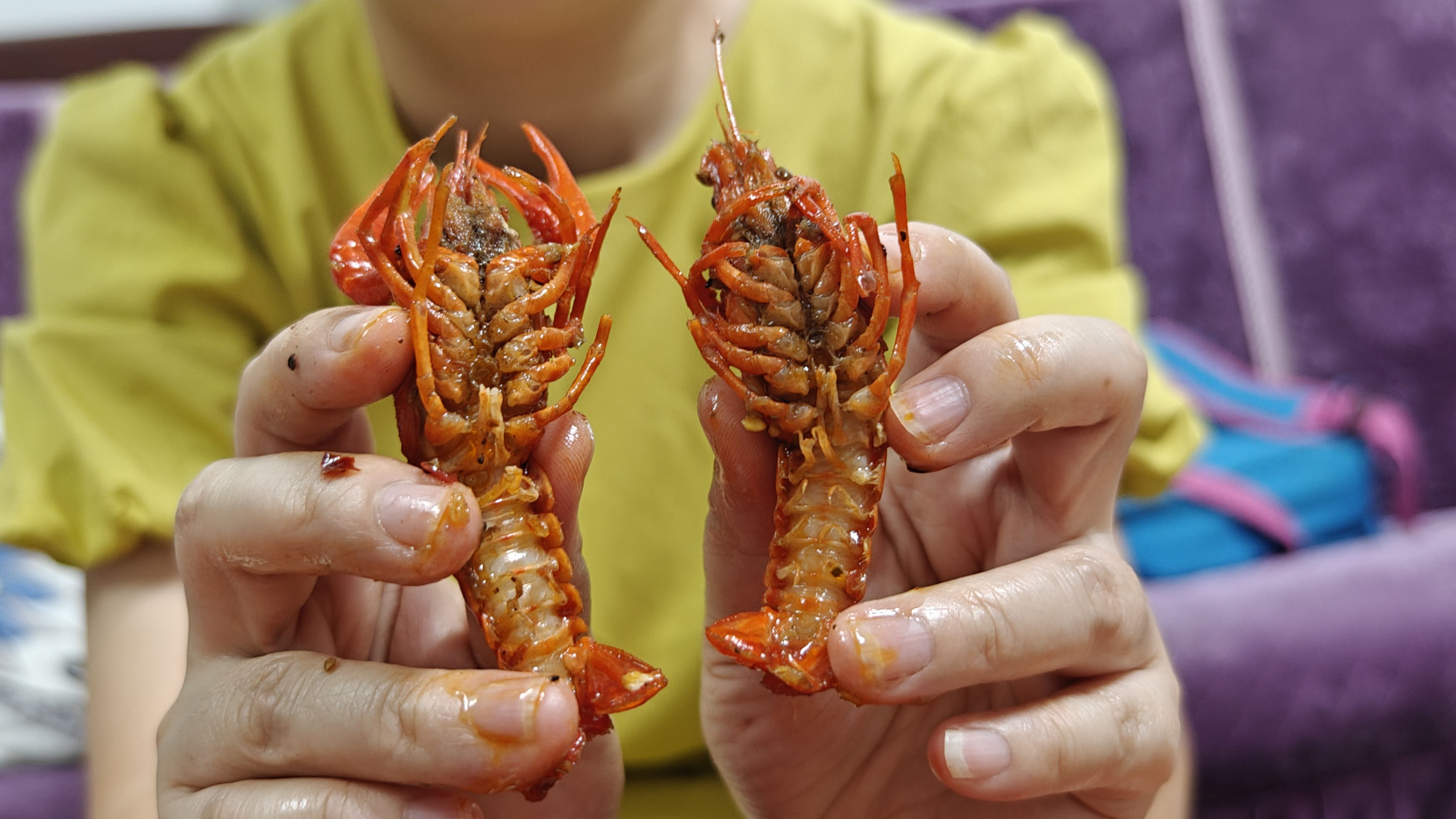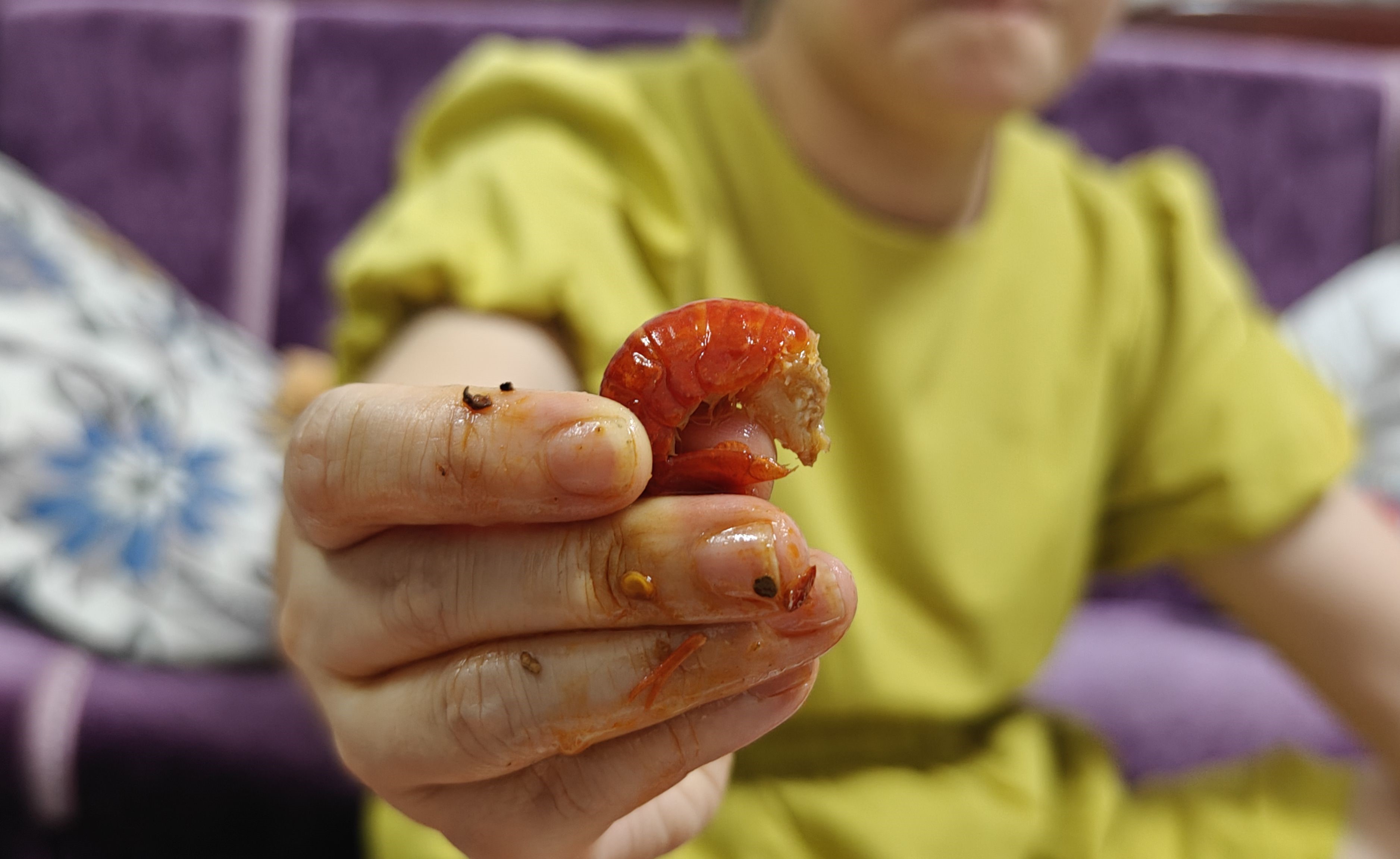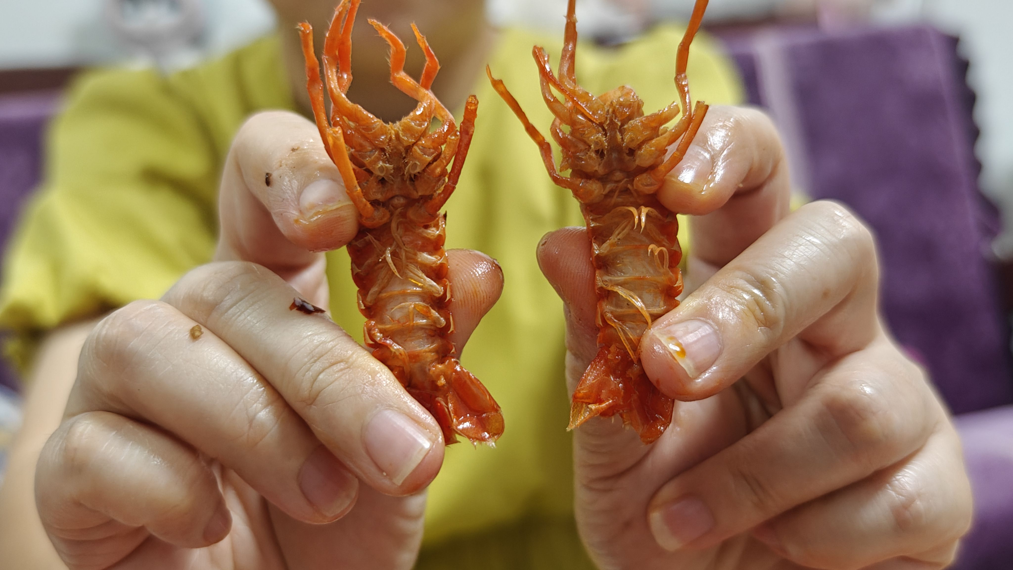 ▼今锦上的小龙虾可能选的是青虾为原料,虾壳普遍比较软,稍微用一点力就能掐扁。