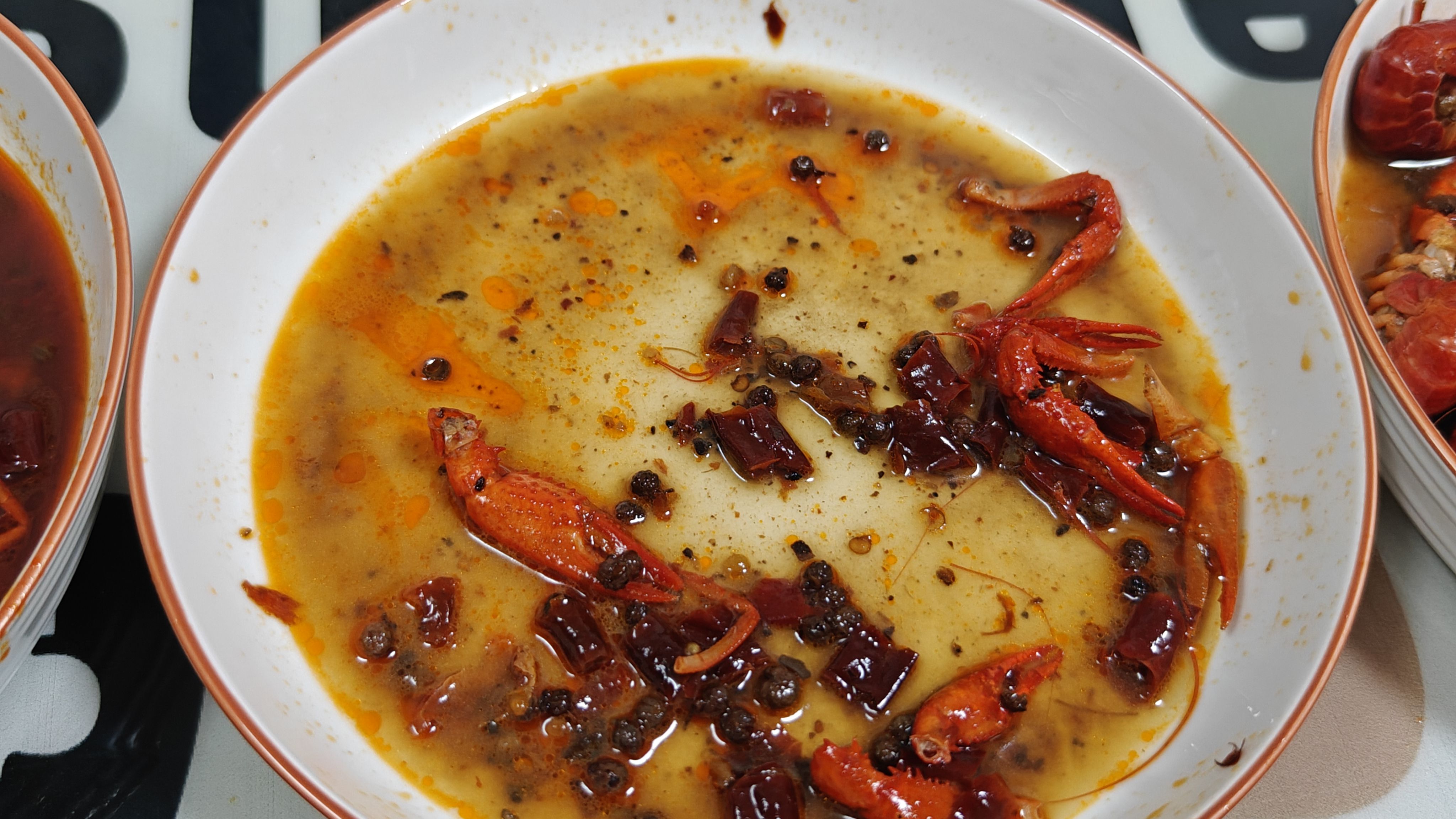 ▼海底捞的汤汁稍微淡一些,没有那么重的辣椒,调味上更为突出四川的麻,辣味稍微有点点淡,但是小龙虾配的汤汁比较多,浸泡的时间很充分,非常入味,一直炫一直爽。