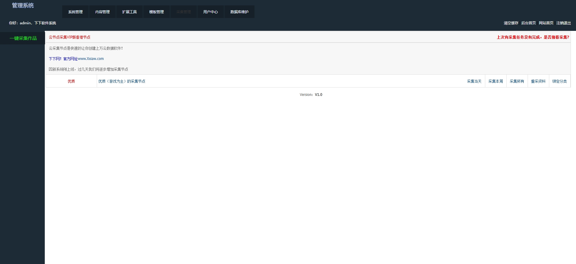“下下软件系统”的管理后台内置了强大的数据采集模块。用户只需轻松点击一下,即可迅速填充网站内的10万软件资源。这种高效的数据采集方式不仅节省了用户的时间和精力,还确保了网站内容的丰富性和多样性。