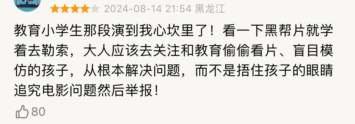 但是这部剧整体而言质量还是很过关的,毕竟不同于以往的教育剧,这部剧的目的是挖出未成年人犯罪的动机。