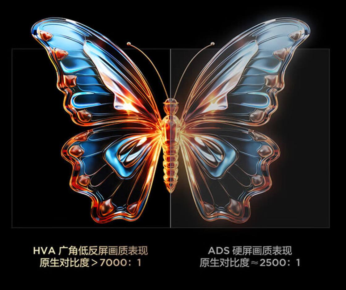 这种HVA广角低反屏的液晶排列呈89°排列,同时可以更精准地控制通过液晶层的光线,整体画面表现也更加还原到位。