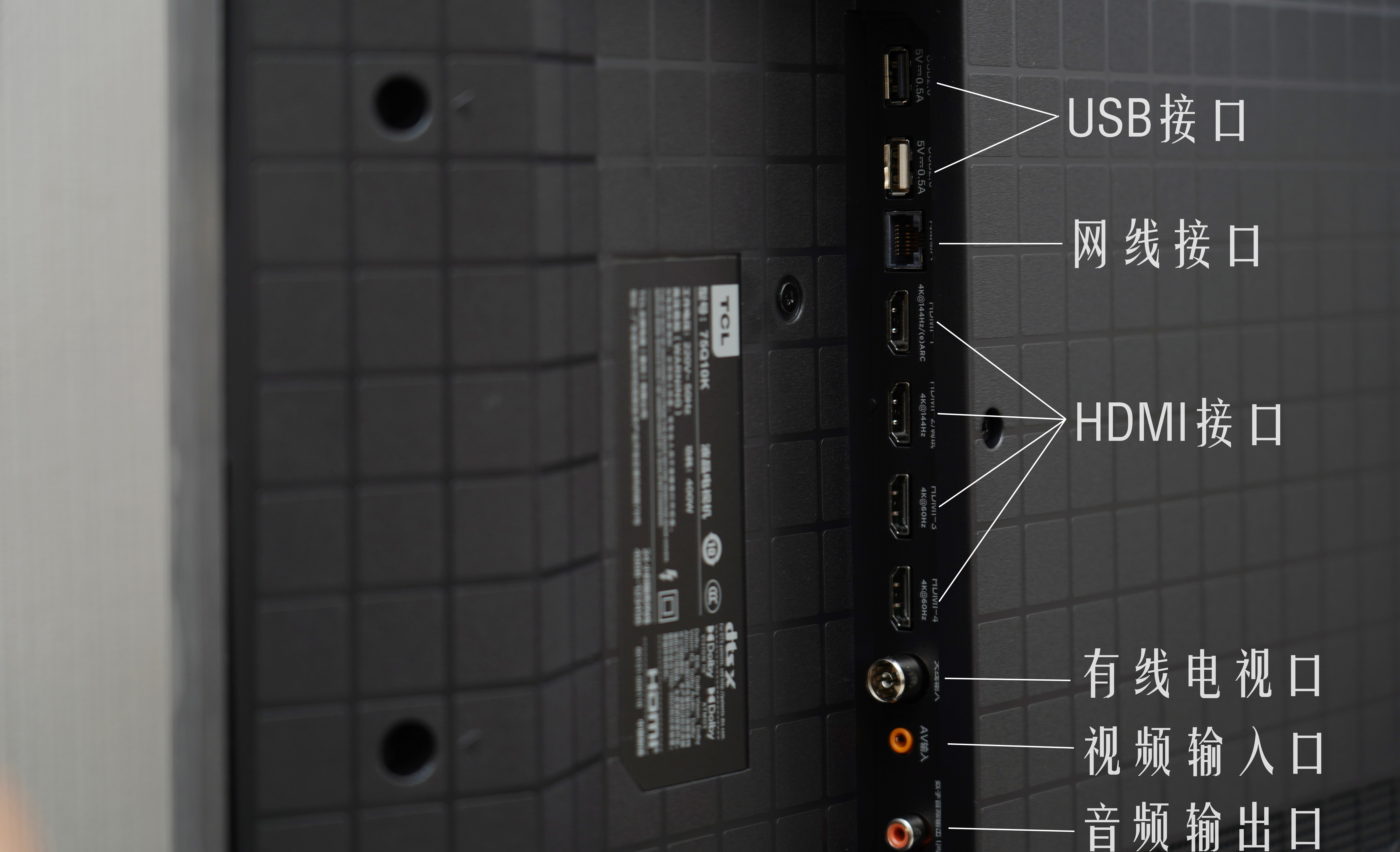 新品旗舰的拓展支持持续拉满,4个HDMI接口、1个网线插口、1个有线电视接口、1个视频输入口、1个音频输出口,集成了各种常规接口,支持各种影音及游戏设备的拓展连接。
