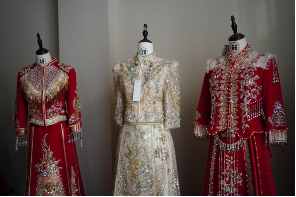 通过改良面料提升做工,查兰如在拼多多经营中高端敬酒服。(郭家宝 摄)