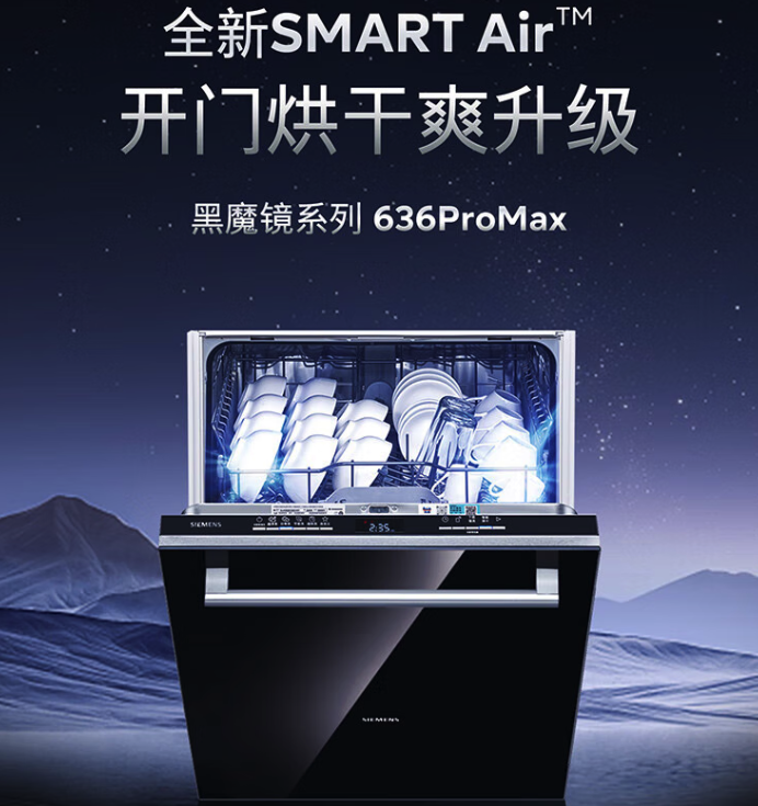 西门子黑魔镜636ProMax则深刻诠释了什么是德系精工与现代美学的暴力美学。当你凝视它那深邃的黑镜面板时,代入的是一种掌控全局的精英生活质感。它不满足于基础的洗涤,而是用五层喷淋系统构建了一个360度的漩涡战场,尤其是下层增压强洗,4.1米的水柱冲力足以让最顽固的牛油火锅底料瞬间土崩瓦解。