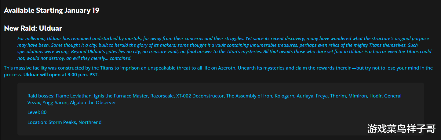 上图是欧美服魔兽世界官方发布的信息,同时暴雪还发布了最新蓝贴,说明了奥杜尔开启的时间(下图为奥杜尔开启蓝贴)。开启奥杜尔阶段有6项新内容也随之上线,下面祥子哥就详细为大家介绍一下。