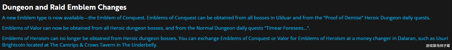 1月19日一个新的神秘泰坦遗迹会出现(副本入口),其实这就是暴雪说到的史诗5人副本,史诗级5人副本只能从这里进入开启。10人NAXX、永恒之眼和黑曜石圣殿的装备,也将会在史诗级5人副本掉落,具体装备是怎么掉落的目前还不清楚。