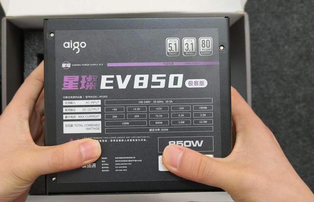 电源用的是的爱国者的星璨 EV 850W 白金牌全模组电源,主打的优势的“80PLUS 双认证、PCIe5.1、智能 ECO”等设计,500多块的价格我觉得还是非常实在的,毕竟全日式的电容,支持一键超频,电源动力强劲,用户按下“BOOST”按钮后,风扇全速运转,电源可在 120% 额定功率下持续工作,从而实现一键超功率。