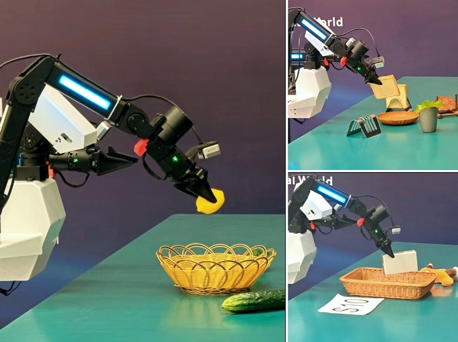 比赛中要求参赛机器人在开放场景中听懂自然语言指令,完成抓取、分类、堆叠等复杂操作。这一看似简单的任务,实则暗藏具身智能的两大 “死亡陷阱”:一是仿真到真机的“水土不服”,众多团队因模型部署失败、执行卡顿而中途弃赛;二是泛化能力不足,面对未公开的物体类型与随机摆放的位置,机器人常出现“看不懂指令”“抓不准位置”的情况。