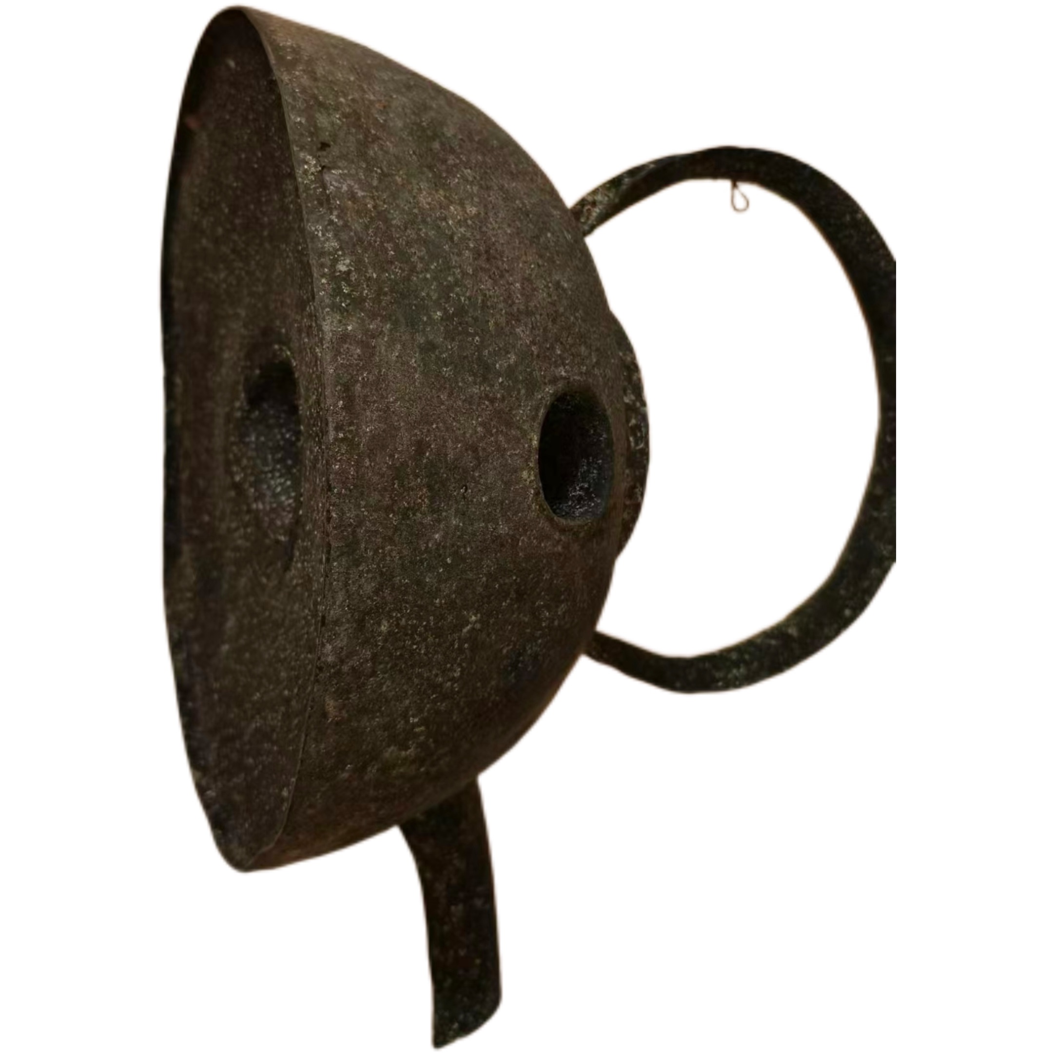 从形制上看,这把壶属于提梁壶类型,提梁设计便于悬挂或手提,是古代民间常见的实用器型。在漫长的历史中,壶的功能从单纯的 “盛水 / 酒” 逐渐延伸,融入了礼仪、审美等文化内涵。商周时期的青铜壶是贵族礼器,而民间的黄铜壶则更偏向实用,但在实用之余,也体现了不同时代的工艺风格与审美趣味。