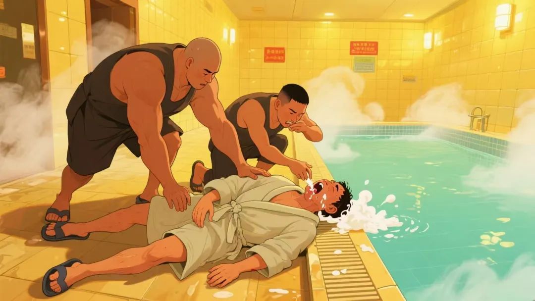 2025年2月21日10时33分许,雷某(38岁)到某洗浴中心大厅购票并换上拖鞋去洗澡。10时56分许,雷某倒在澡堂大池外侧南边,嘴里冒白沫、身体抽搐,搓澡工刘某、杨某见状,一人扶着雷某侧躺,一人抠着雷某的嘴防止其咬着舌头;10时58分19秒,该洗浴中心经营者李某拨打120急救电话,11时02分42秒,拨打村卫生室医生电话,11时06分05秒,拨打110报警电话;11点06分,村医到达现场,雷某已经没有生命体征,口鼻有汽沫流出;11时08分,村医离开现场;11时12分,120到达现场,医护人员确认雷某死亡;11时15分,110处警民警到达现场,随后法医到达现场,未发现明显外伤,雷某家属拒绝进行法医解剖。