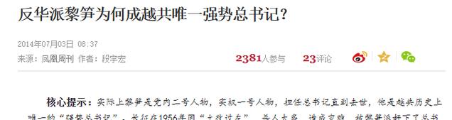 反华派黎笋为何成越共唯一强势总书记,凤凰周刊,2014年07月03日