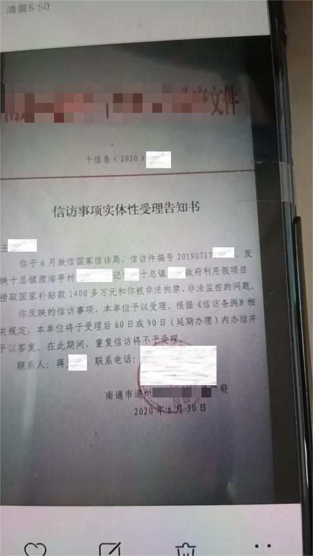 近日,江苏省南通市通州区十总镇渡海亭村农户王先生就自身信访相关情况向外界反映。据其所述,因家庭经济困难,且认为未享受到相应的低保待遇。其已上访多年,期间不仅诉求未获解决,反而多次遭到地方相关人员截访、限制人身自由,甚至被关“禁闭”累计长达163日,个人健康、家庭生活及多项合法权益受到严重侵害,事件引发社会各界对基层信访问题与公民权利保障的关注。
