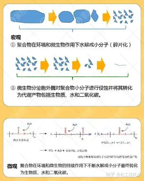 是在可降解塑料的单体中,引入了一部分可以用作微生物食用的分子结构,这样,聚合后的塑料就可以被微生物分解,从而实现可降解的目的。