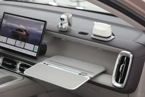 值得一提的是副驾驶前方的“魔术扩展坞”——通过6个标准魔术孔和1个矩形凹槽,用户可自由组合手机支架、折叠桌板等配件,极大提升了副驾区域的功能延展性。对于有孩子的家庭或经常需要临时办公的用户来说,这一设计颇具实用性。