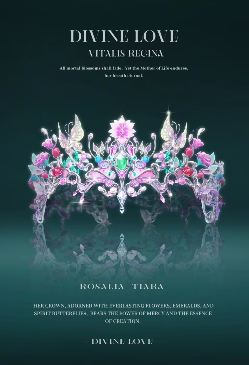 缔灵爱:花翎人物造型细节展示,绿宝石碎花王冠,精致蝴蝶卡袖。